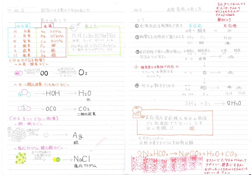 大項目1⃣で原子について書いたあと、隙間を空けずにすぐに大項目2⃣で分子について書くと、非常に見にくいだけでなく、混みあった見た目によって、あとで見たり書き込んだりする気が失せてしまいます。